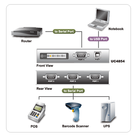 | Serial | 2 x DB-9 Male (Black) | 4 x DB-9 Male (Black) | |