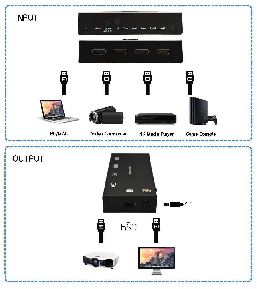 - สลับสัญญาณ HDMI 4 input ออก 1 Output